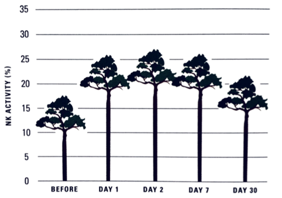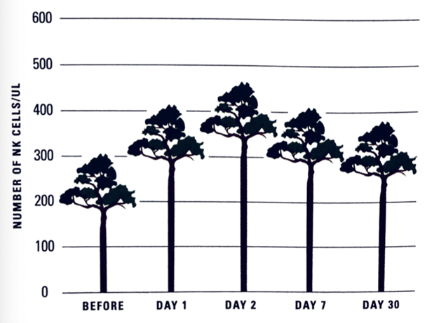 “I took measurements on a normal working day before the trip and again one, two, seven and thirty days after the trip was over. The results showed that natural killer activity and the number of natural killer cells were significantly increased after forest-bathing and that this effect lasted not just for seven days but for as long as thirty days.”